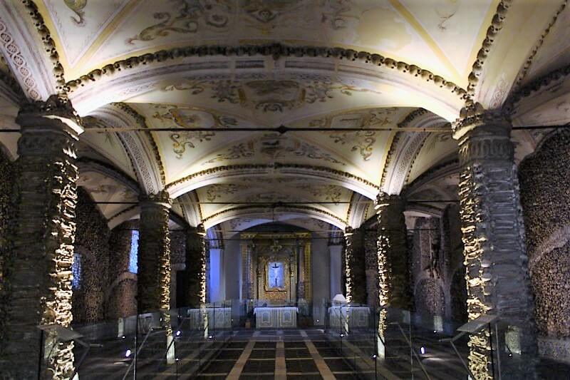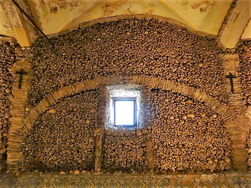 壁や柱などが、人骨で埋め尽くされている礼拝堂で、16世紀に修道士たちにより、5000体の人骨を使ってつくられているそうです。