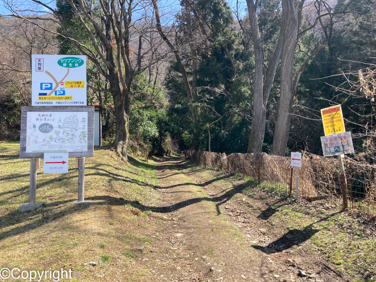 戸倉駅裏手にあるキティパーク内にあり、駐車場から10分ほど歩くと到着。群生地も林道もボランティアによって綺麗に整備されています。